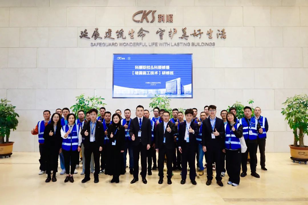 科顺修缮发挥行业龙头领军力量,联合科顺职校打造“教、学、练、考”四位一体的前沿教学模式,为不同资质的修缮从业者,定制精品培训课程,志在培育并向社会输送既怀揣精湛技艺,又富有市场洞察力的建筑修缮精英团队。