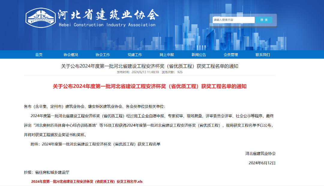 2024年度第一批河北省建设工程安济杯奖(省优质工程)获奖工程名单正式公布,科顺股份与中国电子系统工程第四建设有限公司共同建设的河北普兴电子科技股份有限公司搬迁项目,成功摘取“安济杯奖”!