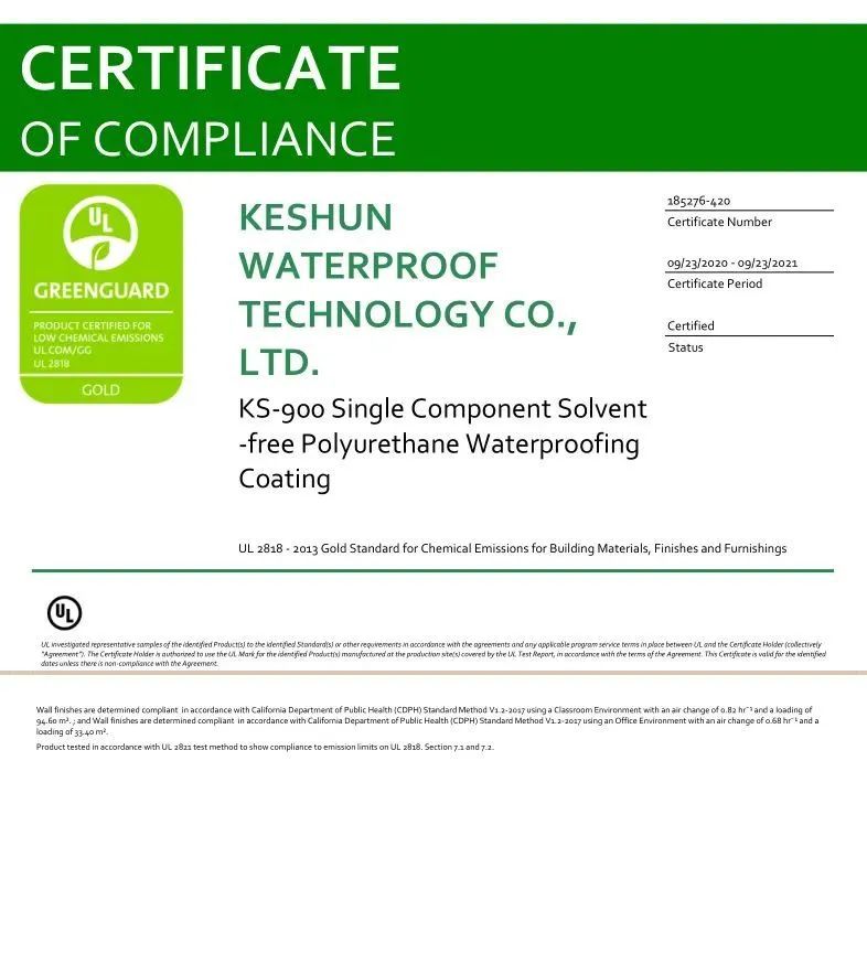 针对建材行业产品低VOC化、环保化的发展趋势,科顺股份研发团队致力于研制环保性能高、物理性能优异的防水涂料,并成功制备出KS-900防水涂料。