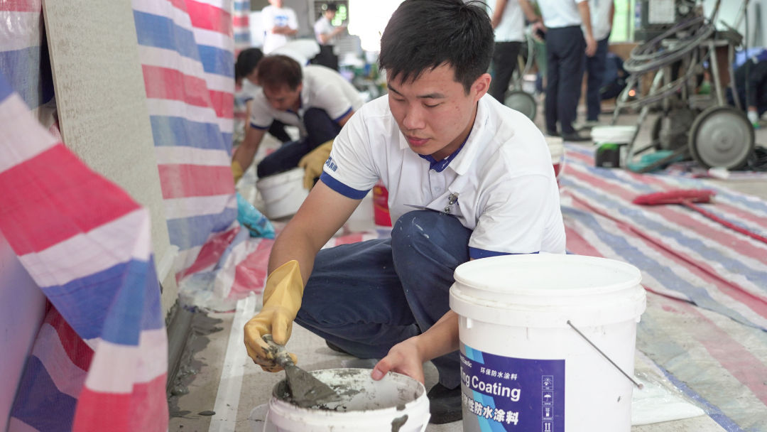 严智明与参与全国建筑防水行业(防水工)职业技能大赛的伙伴们