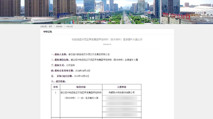 近期,科顺股份以第一中标候选人身份,顺利入围杭绍临空示范区开发集团甲控材料(防水材料)名录。
