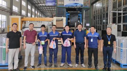 荆门市掇刀区住房和城乡建设局王拥石局长、王光茂副局长等一行走访荆门基地,听取荆门科顺总经理王能永对厂区建设、生产情况汇报,并为一线员工送去夏日慰问物资。