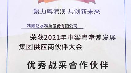 科顺股份荣获中梁粤港澳发展集团「优秀战采合作伙伴」