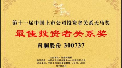 【荣耀科顺】最佳投资者关系奖,业绩长虹,股价长红