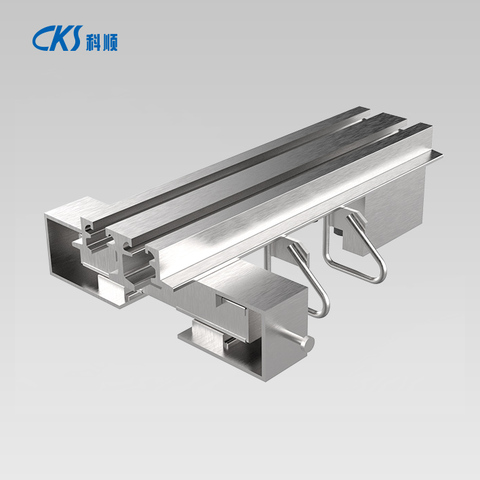 模数式伸缩装置采用热轧整体成型的异型钢材和支承横梁(单缝无)、位移控制箱(单缝无)、锚固构件和密封橡胶带组成,可根据桥梁实际位移量要求确定组数。