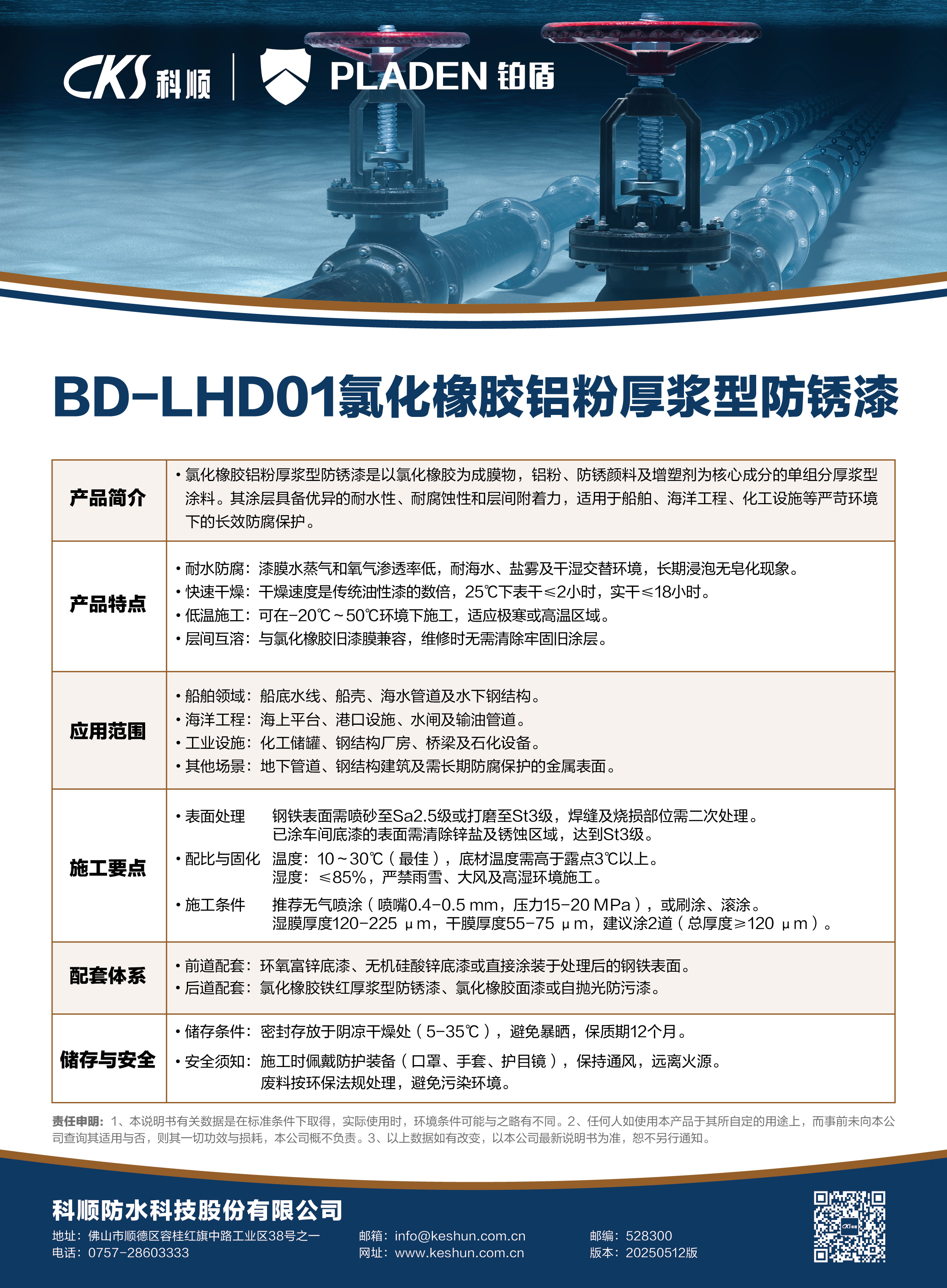 氯化橡胶铝粉厚浆型防锈漆是以氯化橡胶为成膜物,铝粉、防锈颜料及增塑剂为核心成分的单组分厚浆型涂料。其涂层具备优异的耐水性、耐腐蚀性和层间附着力,适用于船舶、海洋工程、化工设施等严苛环境下的长效防腐保护。