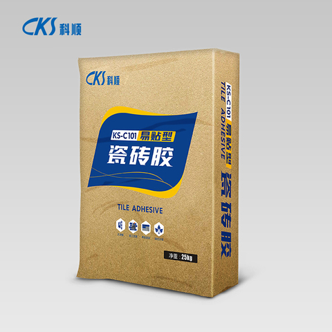 KS-C101易贴型瓷砖胶是应用于室内粘贴高吸水率瓷砖的粉状环保型瓷砖胶。由波特兰水泥、精制细骨料并添加多种功能型改性剂配制而成。直接加水搅拌即可使用。适用于粘贴吸水率大于6%的瓷砖,瓷砖胶的粘贴厚度范围可为5~20mm,具有良好的抗滑移性能和粘结强度。