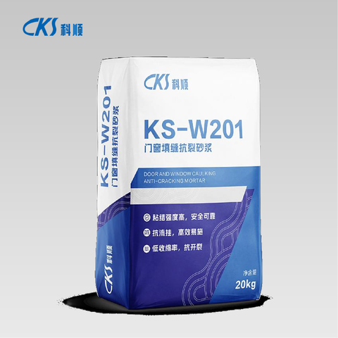 KS-W201门窗填缝抗裂砂浆以优质水泥为无机胶凝材料,精制砂为骨料,并添加多种功能助剂配制而成;本产品加水搅拌即可使用,施工便利,粘结强度高,收缩变形小;适用于门窗框与基层墙体间的塞缝处理,也适用于缝宽不大于2厘米的缝隙处理等。