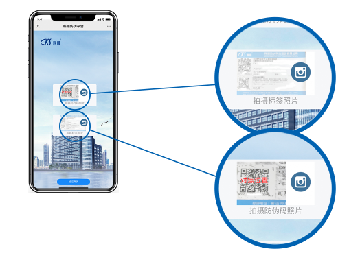 点击“拍摄防伪码照片”,对准“物流码与防伪码”区域进行近距离拍照