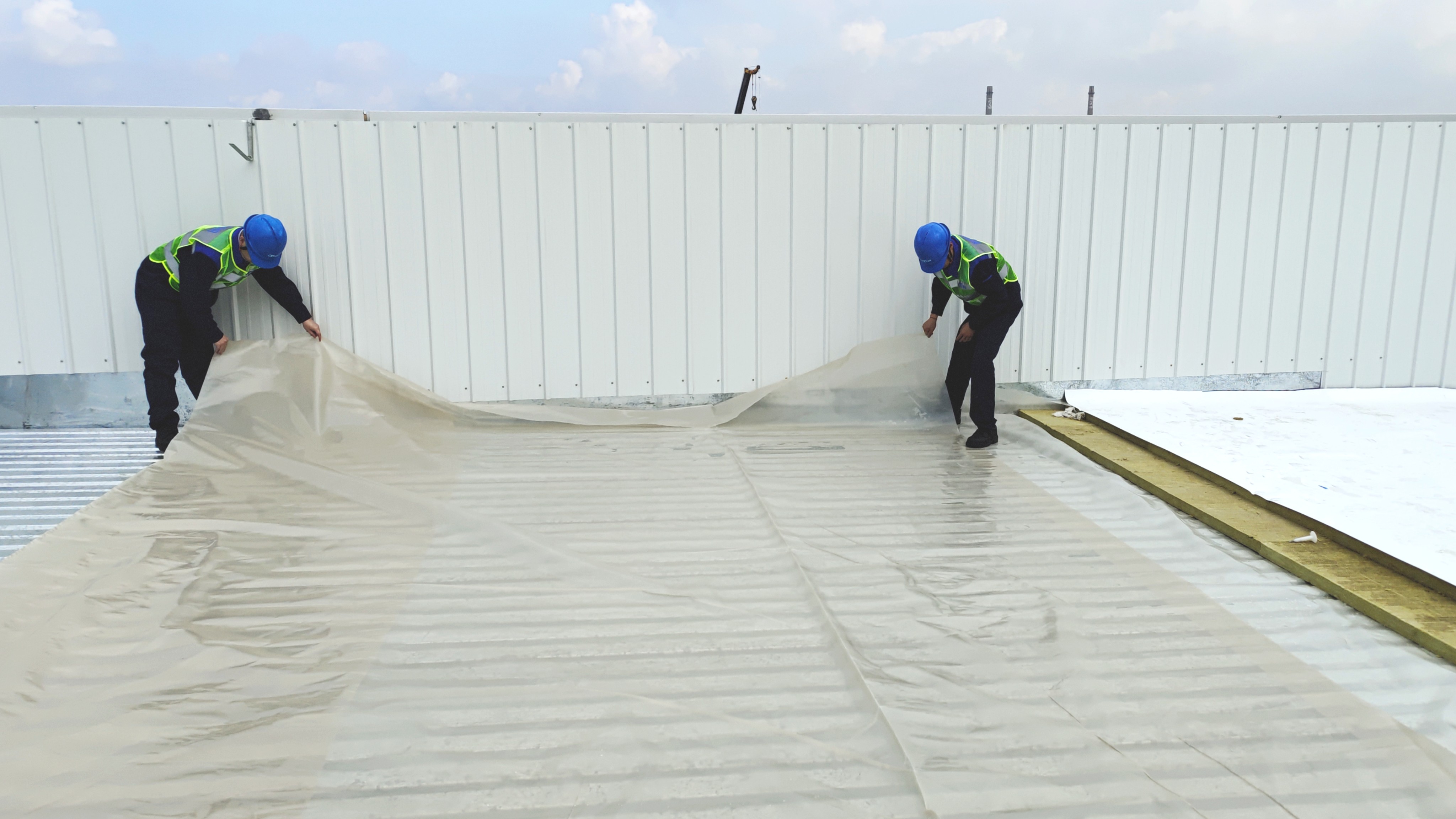 科顺股份以中国建筑防水领航企业的质量口碑和创新实力,参建该项目的金属屋面防水工程。项目采用TPO高分子防水卷材,应用机械固定的方法施工,范围包括PE膜隔汽层、岩棉保温层、TPO防水层等实施标准化施工。